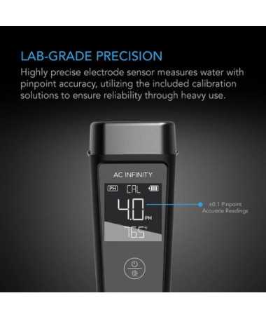 Das AC Infinity pH Meter PRO Kit mit austauschbarer Elektrode ist ein zuverlässiges pH- und Temperaturmessgerät, das zusammen mit den für die Inbetriebnahme und ordnungsgemäße Wartung des Geräts erforderlichen Flüssigkeiten verkauft wird. Es handelt sich um ein fortschrittliches Wasserqualitätstestgerät, das für die regelmäßige Überwachung und Aufrechterhaltung des richtigen pH-Werts in verschiedenen Anwendungsbereichen entwickelt wurde.