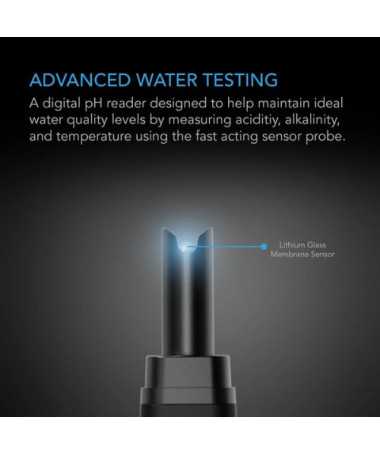Das Gerät ermöglicht eine genaue Messung des Säuregehalts, der Alkalität und der Temperatur des Wassers und eignet sich daher nicht nur für den Gartenbau, sondern auch für Aquarien, Schwimmbäder und viele andere Orte, an denen die Kontrolle der Wasserparameter wichtig ist. Die verwendete austauschbare Sonde mit einer hochempfindlichen Glasmembran sorgt für sofortige Ergebnisse und eine hohe Messgenauigkeit.