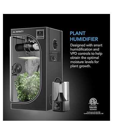 A new-generation 4.5-liter humidifier with intelligent controls and targeted steam delivery for ideal moisture levels for successful plant growth. Its body is specially sealed to increase water resistance to prevent water leakage from the tank, extending and maintaining its long life. The controller has a built-in humidity trigger and VPD, which uses a wired sensor probe for accurate readings and timer programming. When activated, the innovative EC ultrasonic vaporizer digitally pulses water to distribute moisture throughout the grow space. This degree of control, combined with intelligent programming, will allow you to adjust the climate to facilitate healthy nutrient uptake. This product is part of the UIS™ platform of growing devices and smart controllers, designed to connect to the AC Infinity app via Wi-Fi for the perfect environment.