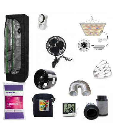 Zestaw ma lepszy jakościowo namiot od tańszych odpowiedników, specjalnie wyciszany wentylator oraz filtr z najwyższej półki.