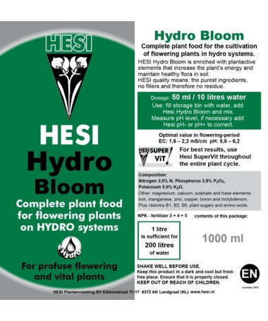 • Hesi Hydro Bloom 1l - Nawóz na fazę kwitnienia hydroponika - 1 - Hydro Bloom zawiera większą koncentrację fosforu i potasu w por
