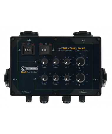 Multi kontrolér upravuje prostředí pokročilým a plně automatickým způsobem, díky čemuž jsou v místnosti vždy ideální podmínky pro pěstování.