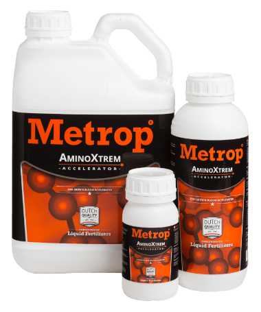 Metrop Root + und Metrop AminoXtrem sind Aminosäuren und Vitamine von höchster Qualität, die das Wachstum von Wurzeln, Stielen, Blättern und Blüten fördern und andere Pflanzenfunktionen beschleunigen. Daher stärkt Amino Root nicht nur die Wurzeln, sondern auch die Blätter und den Stamm und stimuliert die Produktion von Enzymen. Amino Bloom formt die Blüten, stimuliert die richtigen Hormone und hilft bei der Blattformung.