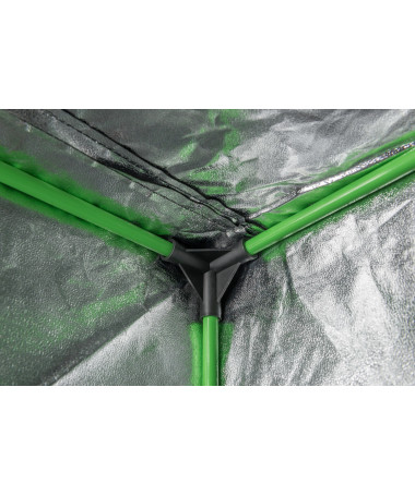 Growbox Herbgarden 50 ist ein Zelt aus reflektierendem Material - MYLAR 190T-Folie. Es hat einen Reißverschluss, was das Auf- und Abbauen erleichtert. Zusätzlich enthält das Set eine MYLAR-Folie als Boden und Zugbänder an den Öffnungen (nicht auf den Bildern zu sehen).