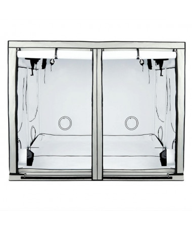 HOMEBOX White Ambient Q240 ist ein hochwertiges Produkt, das von deutschen Spezialisten entwickelt wurde. Die Stoffe sind pflanzenverträglich und langlebig. Das Produkt hat eine 2-Jahres-Garantie. Die Maße im aufgeklappten Zustand sind 240x240xh220cm. Die Growbox hat einen herausnehmbaren, wasserdichten Boden und einen zusätzlichen Zugang zum Innenraum durch Fenster an den Seitenwänden. Der Innenraum ist mit weißem, glattem PAR+ reflektierendem Material...