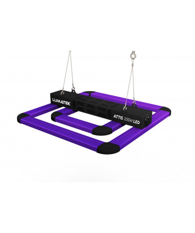Lumatek ATS ist eine LED-Vollspektrum-Beleuchtungsserie mit LUMLED-LEDs und Lumatek-Treibern. Diese leichte Leuchte ist in den Versionen 300 W (1 m² Fläche) und 200 W (0,64 m² Fläche) erhältlich und eignet sich ideal für den Anbau von Pflanzen im Innenbereich.